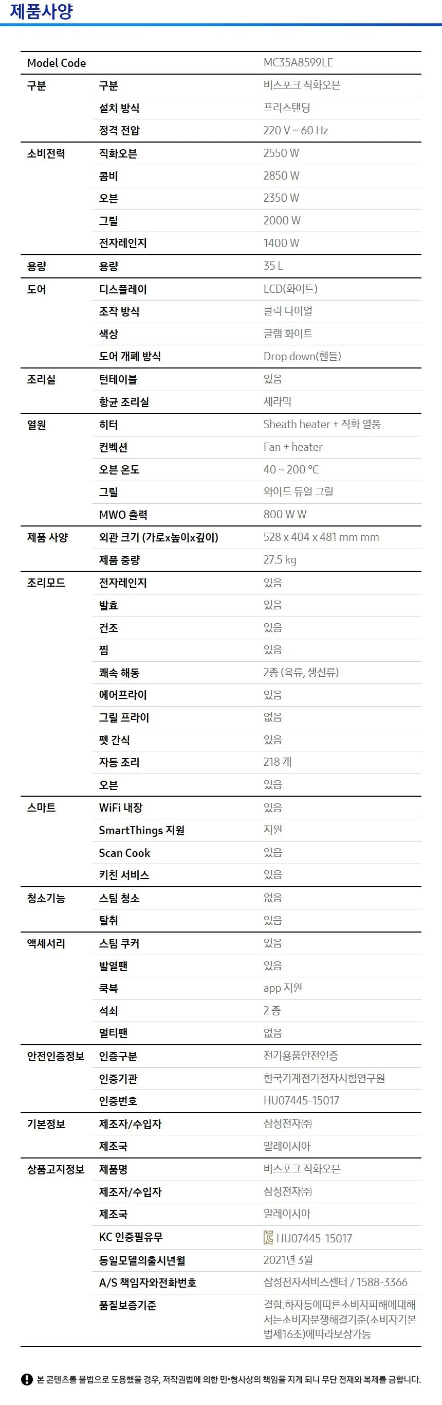 MC35A8599LE BS렌탈 [삼성] 비스포크 직화오븐 35L 글램화이트 제품분류 오븐 AS기간 1년 최저 렌탈가 월 18,500 (렌탈가) 제휴카드 할인가 월 (렌탈가) 3년 4년 5년 할인 제휴카드 보기 렌탈신청 장바구니