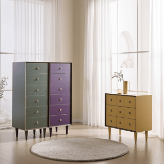[헨지디자인] 플레르 6단 서랍장 SET 바질+그레이프 + 플레르 약장 썸머셋골드 []